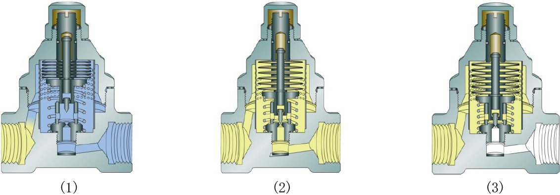 やがて放熱により復水温度が低下するにつれてダイヤサーモ内の圧力が低下し、その圧力が周囲圧力より低くなると再び開弁します。
