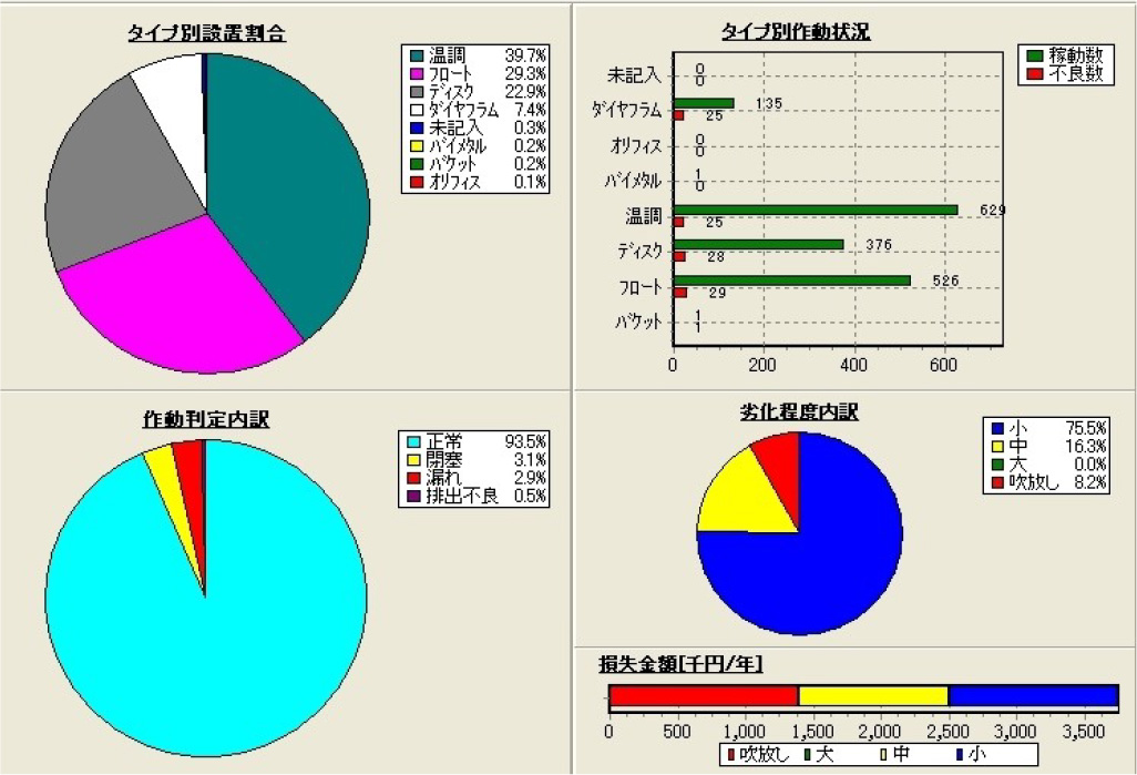 スチームトラップの診断に必要なツールは前述した通りですが、診断からその記録及び集計分析までを自動的、或いは半自動的に行う便利な専用ツールがあります。この項では、㈱ミヤワキ製の診断管理ツールを紹介します。