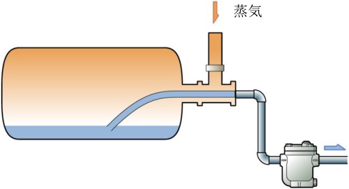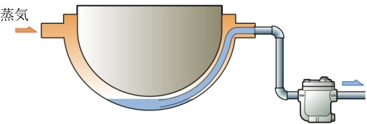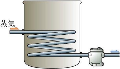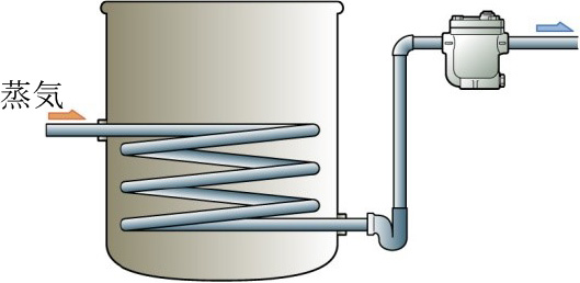 スチームトラップを装置の復水排出路に取付ける場合は、できる限り装置に近いところに取付けるようにします。装置から遠くなるほど、その間でスチームロッキングが生じ易くなるからです。またその装置の復水発生部の最低位置、例えば熱交換器だと伝熱管の最低部かそれより低い位置に取付けなければなりません